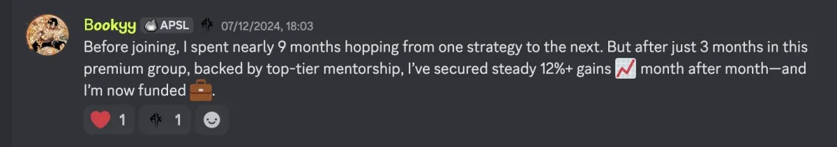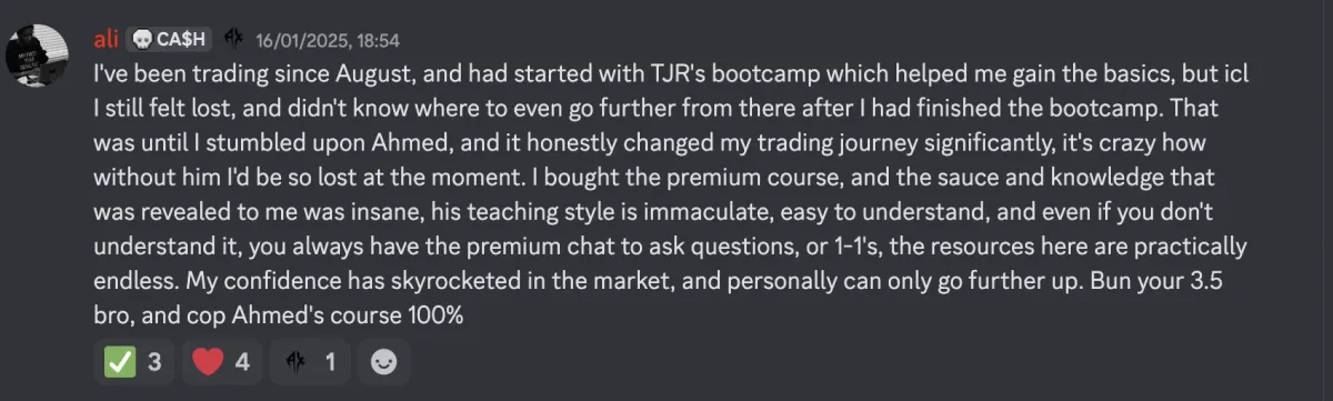 This is not just a course, this is a 1:1 roadmap to take you to becoming a consistently profitable trader. You don't just learn the strategy and work it out yourself. I work with you 1:1 and keep you accountable in order to guarantee that you become a profitable trader.